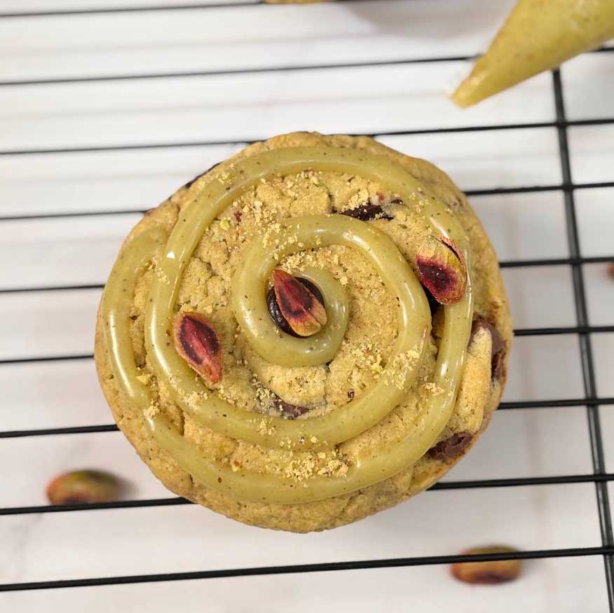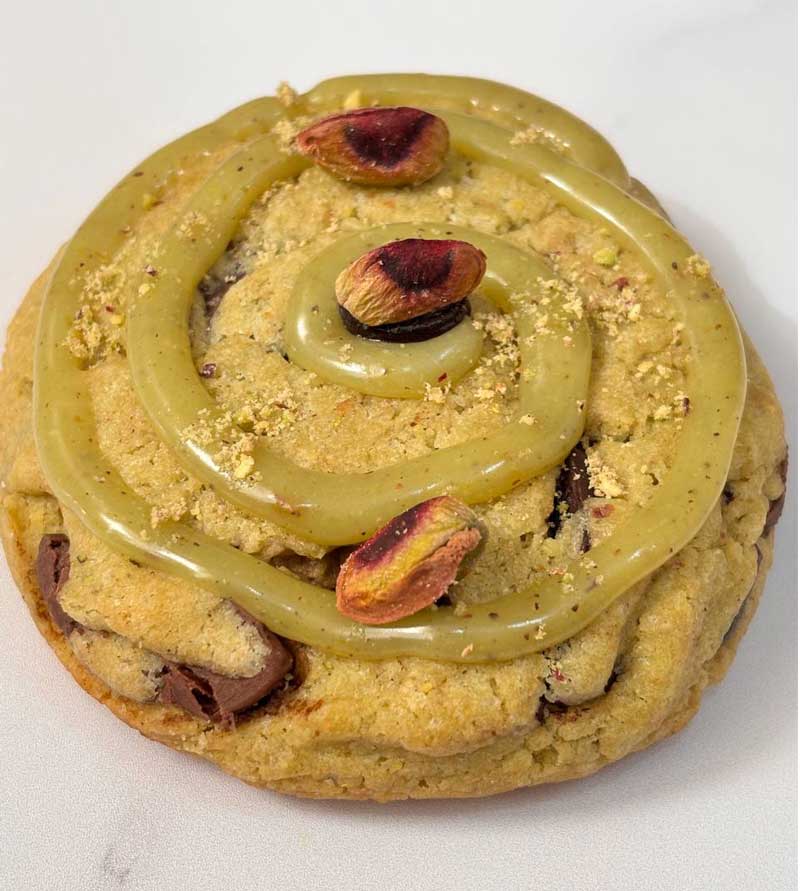 با بافتی منحصربهفرد؛ رویهای ترد، مغزی نرم و لطیف، و لایهای از گاناش پستهای روی کوکی که طعمی خاص و عطر پسته تازه رو به اوج میرسونه. ترکیبی از شکلات خوشطعم و پستهی بوداده، انتخابی بینظیر برای طرفداران طعمهای لوکس و متفاوت.